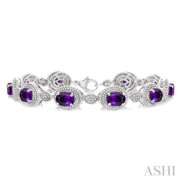 7X5 MM Oval Shape Amethyst and 1/10 Ctw Round Cut Diamond Semi-Precious Bracelet in Sterling Silver Image 2 Adler's Diamonds Saint Louis, MO