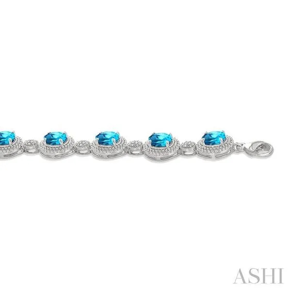 7X5 MM Oval Shape Blue Topaz and 1/10 Ctw Round Cut Diamond Semi-Precious Bracelet in Sterling Silver Image 3 Adler's Diamonds Saint Louis, MO