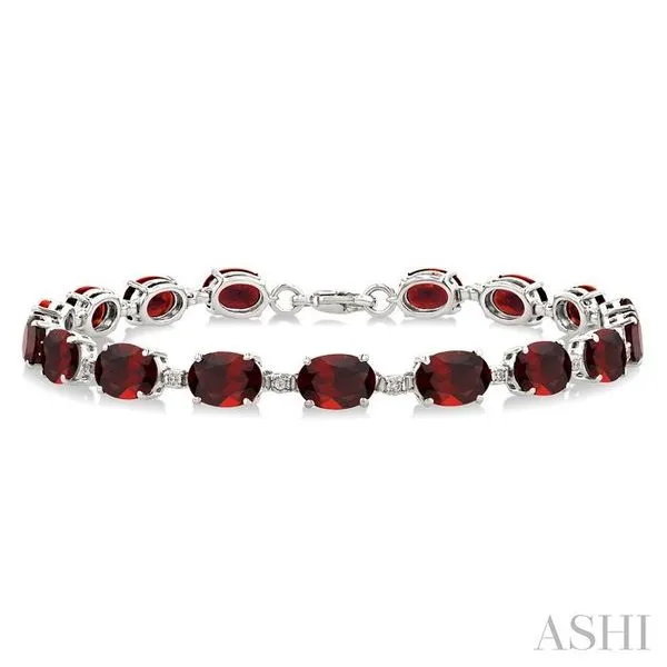 7X5 MM Oval Shape Garnet and 1/10 Ctw Round Cut Diamond Semi-Precious Bracelet in Sterling Silver Image 2 Adler's Diamonds Saint Louis, MO