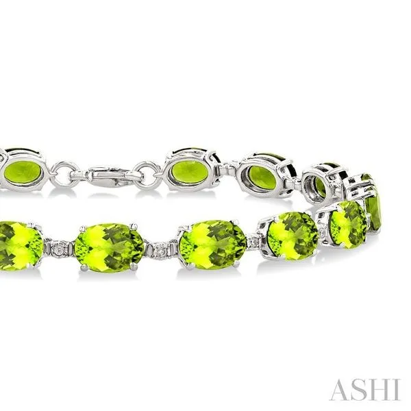 7X5 MM Oval Shape Peridot and 1/10 Ctw Round Cut Diamond Semi-Precious Bracelet in Sterling Silver Image 2 Adler's Diamonds Saint Louis, MO