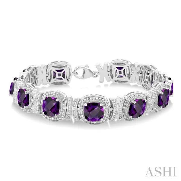 7X7 MM Cushion Shape Amethyst and 1/10 Ctw Round Cut Diamond Semi-Precious Bracelet in Sterling Silver Image 2 Adler's Diamonds Saint Louis, MO