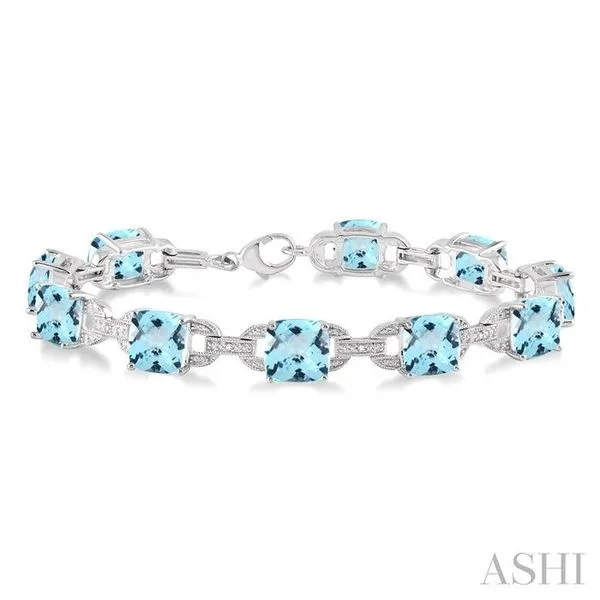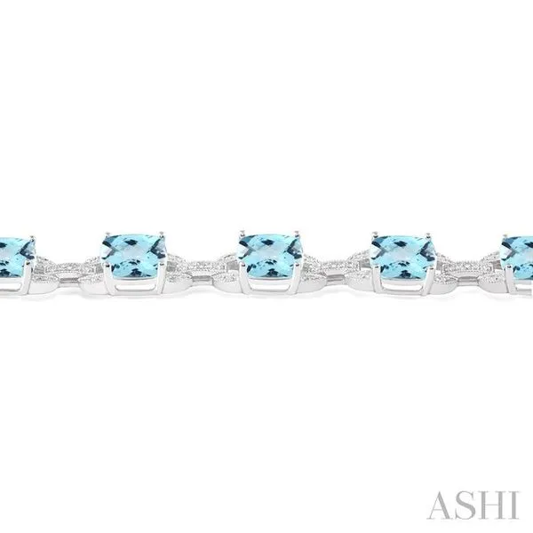 7x7 MM Cushion Shape Blue Topaz and 1/20 Ctw Round Cut Diamond Fashion Bracelet in Sterling Silver Image 2 Adler's Diamonds Saint Louis, MO