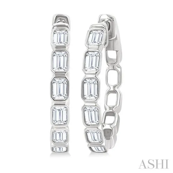 1 1/10 Ctw Bezel Set Emerald Cut Diamond Fashion Hoop Earring in 14K White Gold Image 2 Adler's Diamonds Saint Louis, MO
