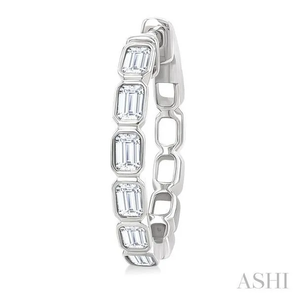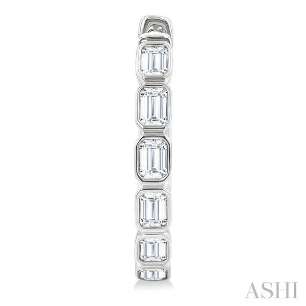 1 1/10 Ctw Bezel Set Emerald Cut Diamond Fashion Hoop Earring in 14K White Gold Image 3 Adler's Diamonds Saint Louis, MO