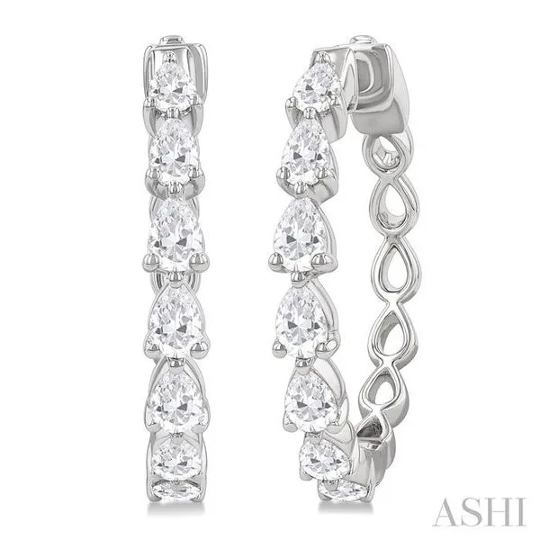 1 1/2 Ctw North-South Pear Shape Diamond Fashion Hoop Earring in 14K White Gold Image 3 Adler's Diamonds Saint Louis, MO