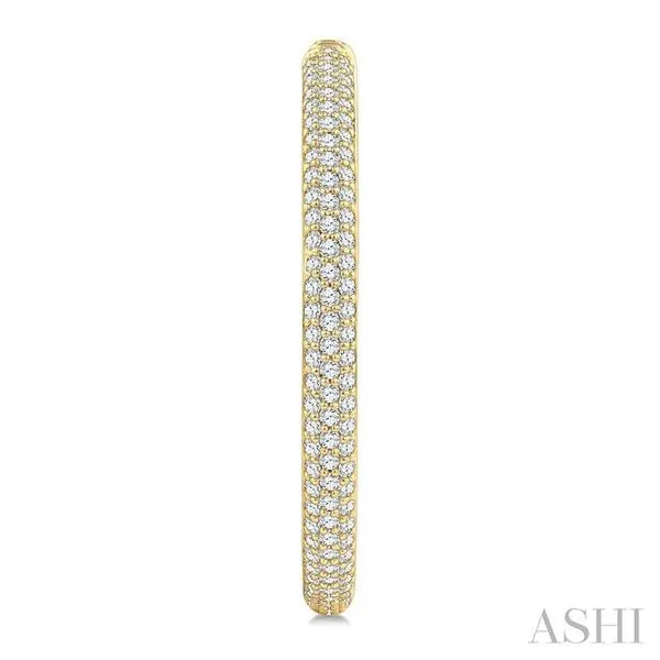 1 1/2 Ctw Pave Set Round Cut Diamond Fashion Hoop Earrings in 14K Yellow Gold Image 3 Adler's Diamonds Saint Louis, MO