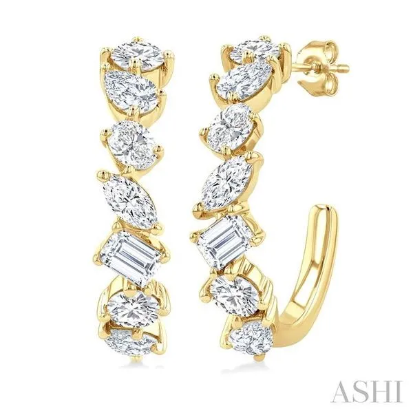 1 1/2 Ctw Scatter Mixed Diamond Cut Fashion Half Hoop Earring in 14K Yellow Gold Image 2 Adler's Diamonds Saint Louis, MO