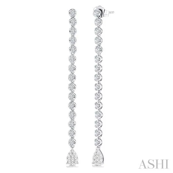 1 1/4 Ctw Lovebright Pear Shape Dangle Tip Round Cut Diamond Fashion Long Earrings in 14K White Gold Image 2 Adler's Diamonds Saint Louis, MO