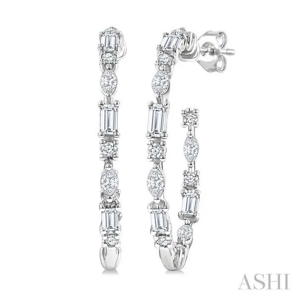 1 1/6 Ctw Inside & Outside Mixed Diamond Cut Fashion Open Hoop Earrings in 14K White Gold Adler's Diamonds Saint Louis, MO