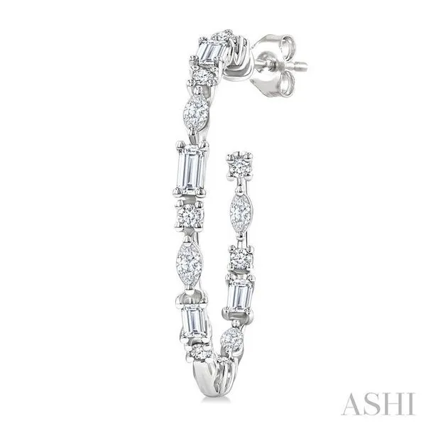 1 1/6 Ctw Inside & Outside Mixed Diamond Cut Fashion Open Hoop Earrings in 14K White Gold Image 3 Adler's Diamonds Saint Louis, MO