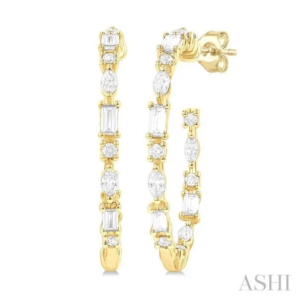 1 1/6 Ctw Inside & Outside Mixed Diamond Cut Fashion Open Hoop Earrings in 14K Yellow Gold Adler's Diamonds Saint Louis, MO