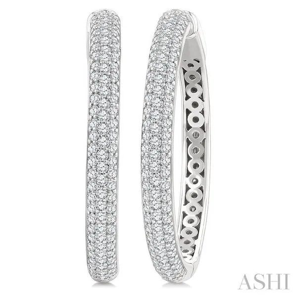 1 Ctw 3-Row Pave Set Round Cut Diamond Fashion Hoop Earring in 14K White Gold Image 2 Adler's Diamonds Saint Louis, MO