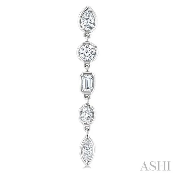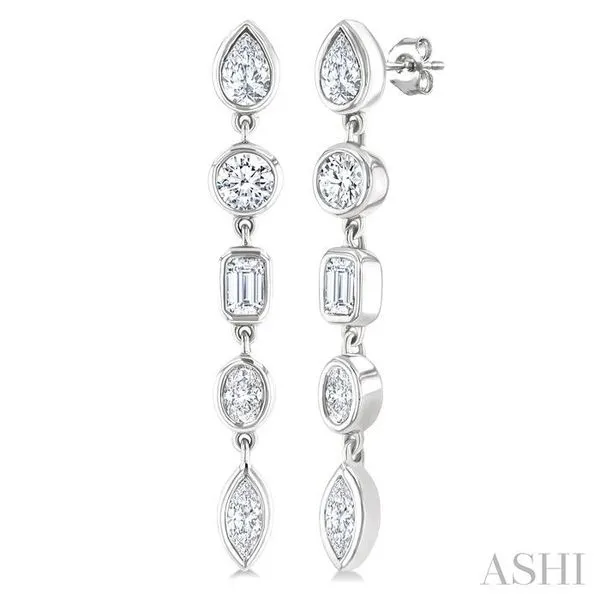 3. 1 Ctw Bezel Set Mixed Diamond Cut Fashion Earring in 14K White Gold