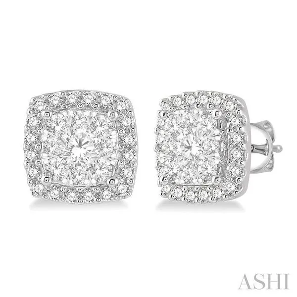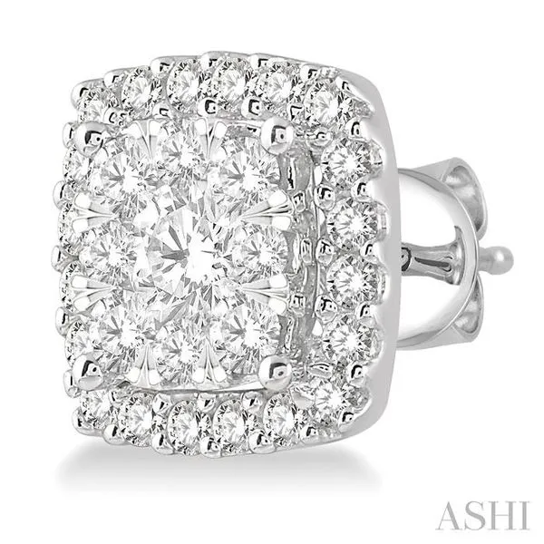 1 Ctw Cushion Shape Lovebright Round Cut Diamond Stud Earrings in 14K White Gold Image 3 Adler's Diamonds Saint Louis, MO