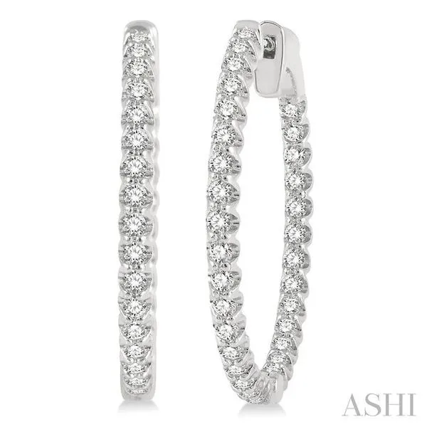 1 Ctw Inside-Out Round Cut Diamond Hoop Earrings in 14K White Gold Image 4 Adler's Diamonds Saint Louis, MO