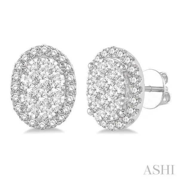 1 Ctw Oval Shape Lovebright Round Cut Diamond Stud Earrings in 14K White Gold Image 2 Adler's Diamonds Saint Louis, MO