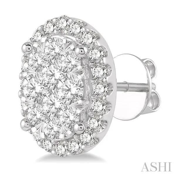 1 Ctw Oval Shape Lovebright Round Cut Diamond Stud Earrings in 14K White Gold Image 3 Adler's Diamonds Saint Louis, MO