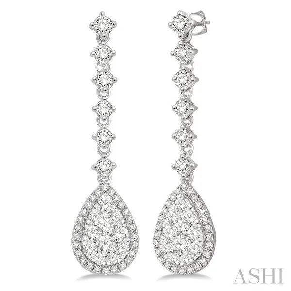 1 Ctw Pear Shape Dangler Round Cut Diamond Lovebright Earrings in 14K White Gold Image 2 Adler's Diamonds Saint Louis, MO