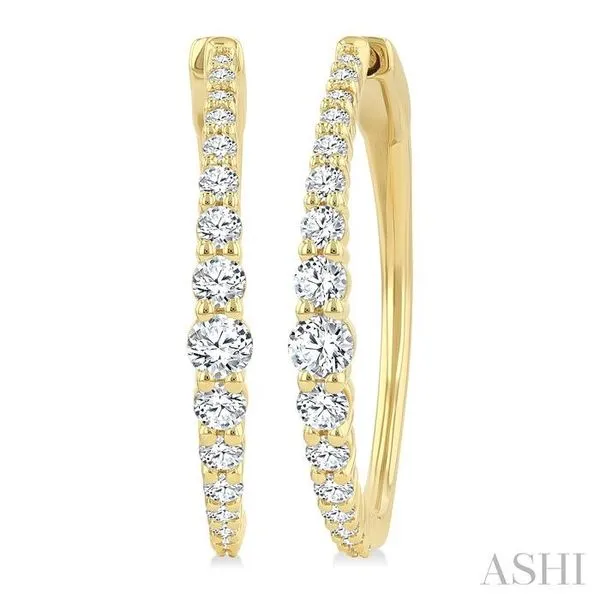 1 Ctw Round Cut Diamond Graduated Riviera Hoop Earrings in 14K Yellow Gold Image 2 Adler's Diamonds Saint Louis, MO