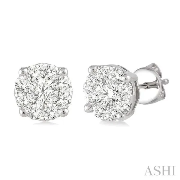 1 Ctw Round Cut Lovebright Diamond Stud Earrings in 14K White Gold Image 2 Adler's Diamonds Saint Louis, MO