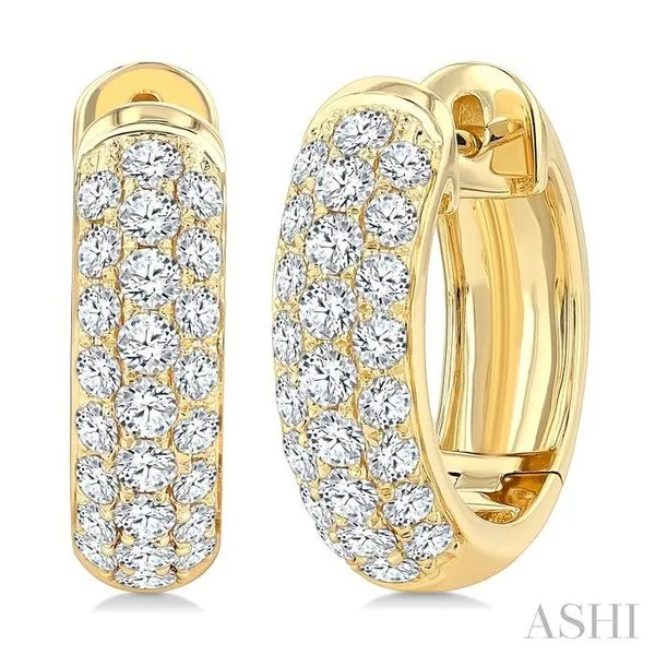 1 Ctw Three-Row Pave Set Round Cut Diamond Fashion Huggies in 14K Yellow Gold Image 2 Adler's Diamonds Saint Louis, MO