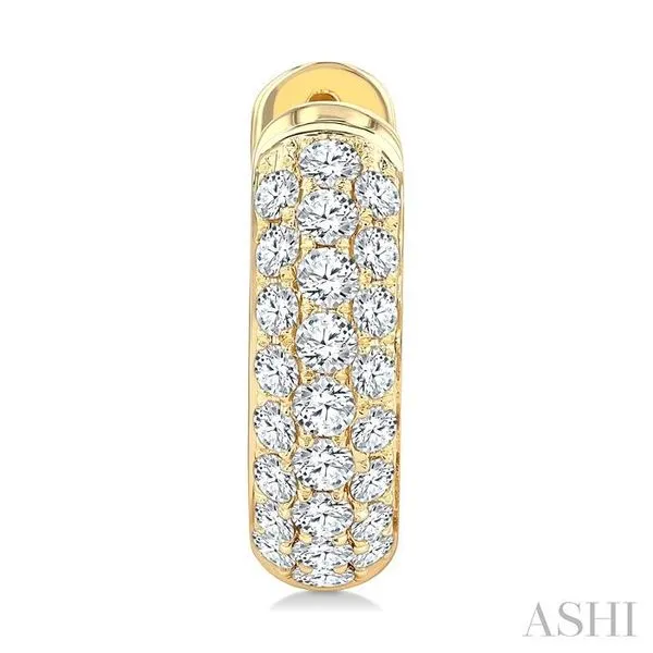 1 Ctw Three-Row Pave Set Round Cut Diamond Fashion Huggies in 14K Yellow Gold Image 3 Adler's Diamonds Saint Louis, MO