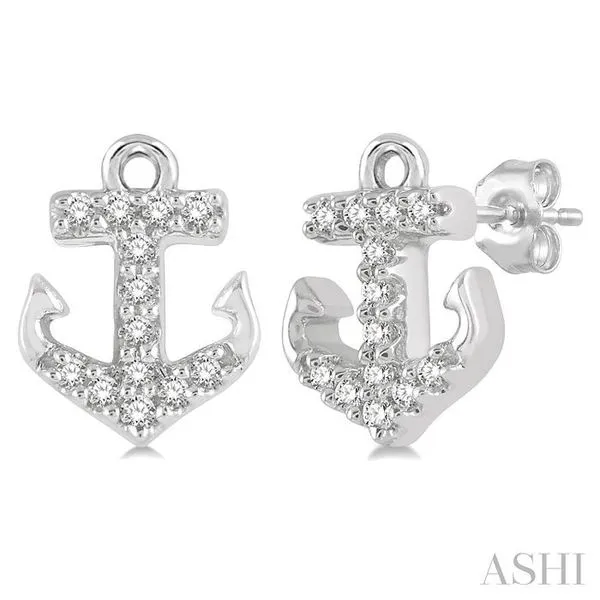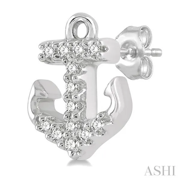 1/10 Ctw Anchor Round Cut Diamond Petite Fashion Earring in 10K White Gold Image 3 Adler's Diamonds Saint Louis, MO