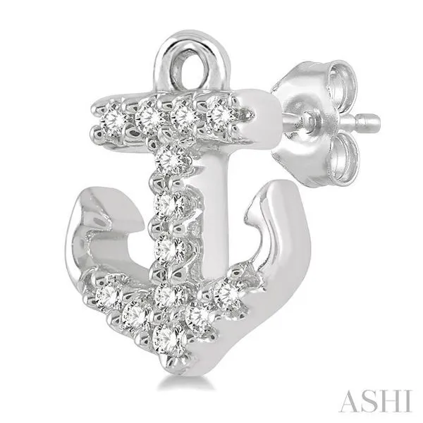 1/10 Ctw Anchor Round Cut Diamond Petite Fashion Earring in 14K White Gold Image 2 Adler's Diamonds Saint Louis, MO