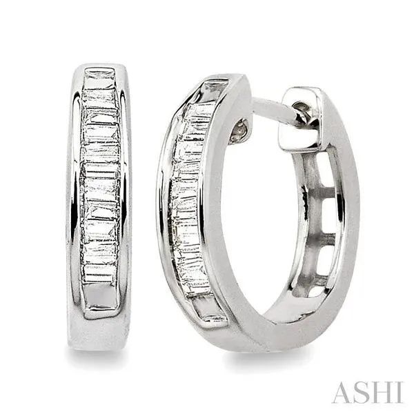 1/10 Ctw Baguette Cut Diamond Huggie Earrings in 14K White Gold Image 3 Adler's Diamonds Saint Louis, MO