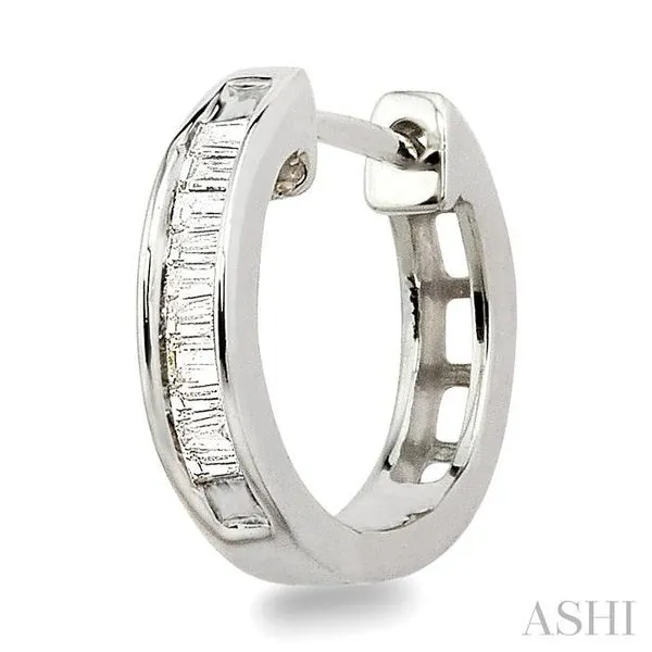 3. 1/10 Ctw Baguette Cut Diamond Huggie Earrings in 14K White Gold