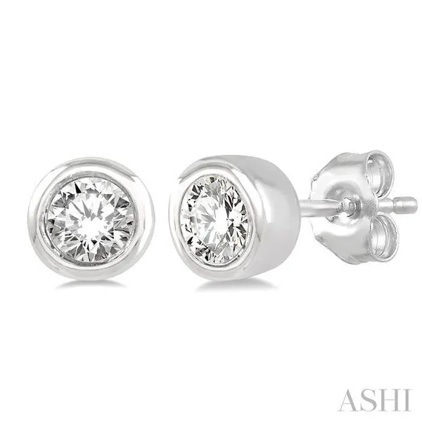 1/10 Ctw Bezel Round Cut Diamond Petite Stud Earring in 10K White Gold Image 2 Adler's Diamonds Saint Louis, MO