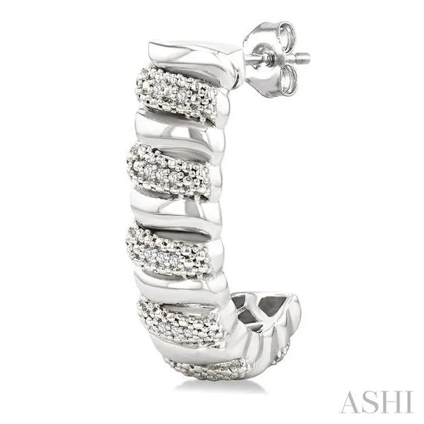1/10 Ctw Bold Silver Ribbed Swirl Round Cut Diamond Bold Half Hoop Earring in Sterling Silver Image 2 Adler's Diamonds Saint Louis, MO