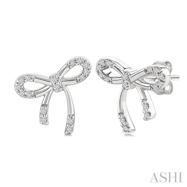 1/10 Ctw Bow Round Cut Diamond Fashion Earrings in Sterling Silver Adler's Diamonds Saint Louis, MO