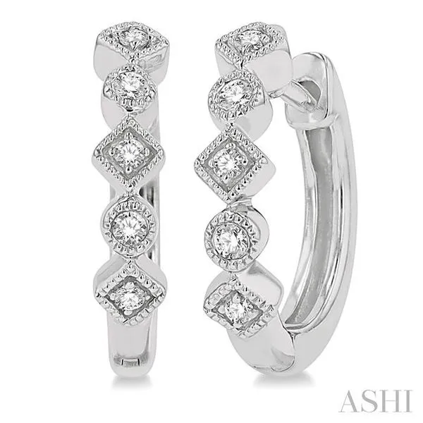 1/10 Ctw Circular & Rhombus Mount Round Cut Diamond Huggie Petite Earrings in 14K White Gold Adler's Diamonds Saint Louis, MO