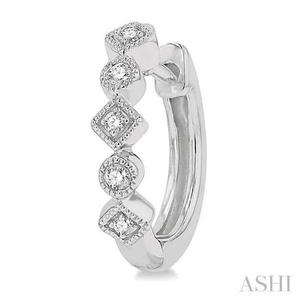 1/10 Ctw Circular & Rhombus Mount Round Cut Diamond Huggie Petite Earrings in 14K White Gold Image 2 Adler's Diamonds Saint Louis, MO