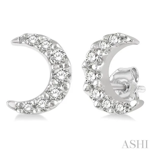 1/10 Ctw Crescent Moon Round Cut Diamond Petite Fashion Earring in 10K White Gold Image 2 Adler's Diamonds Saint Louis, MO