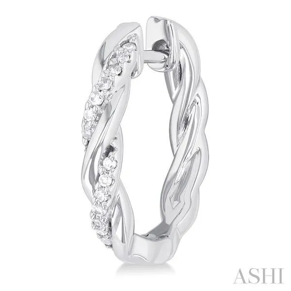 3. 1/10 Ctw Entwined Front Round Cut Diamond Fashion Hoop Earring in 10K White Gold