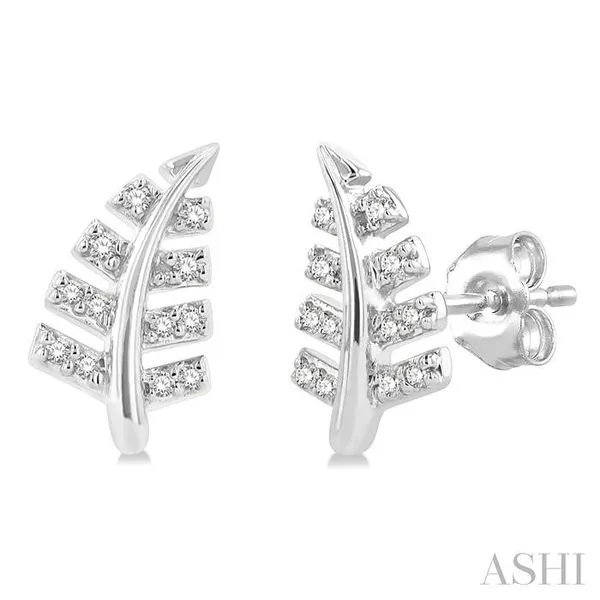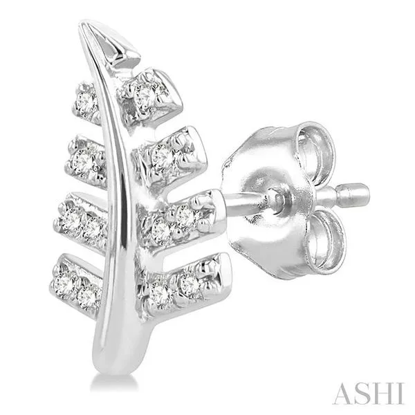 1/10 Ctw Fern Leaf Petite Round Cut Diamond Fashion Stud Earring in 10K White Gold Image 4 Adler's Diamonds Saint Louis, MO