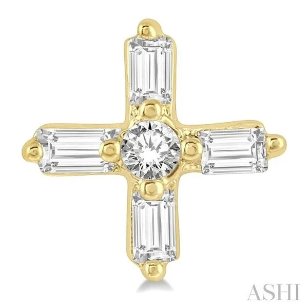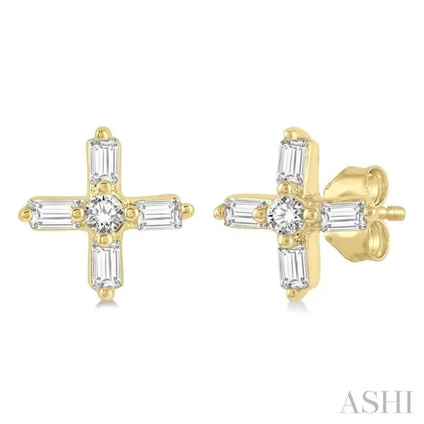 1/10 Ctw Greek Cross Baguette and Round Cut Diamond Petite Earring in 10K Yellow Gold Image 4 Adler's Diamonds Saint Louis, MO
