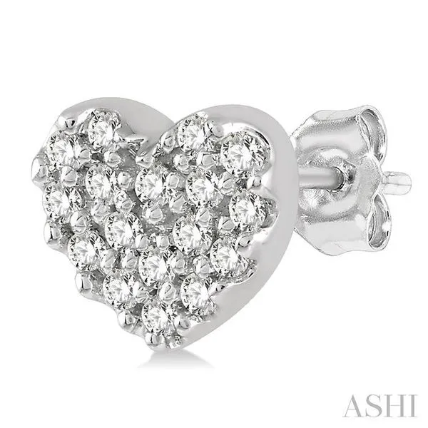 1/10 Ctw Heart Charm Round Cut Diamond Petite Fashion Earring in 10K White Gold Image 4 Adler's Diamonds Saint Louis, MO