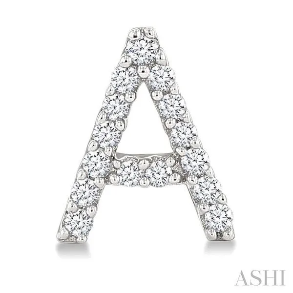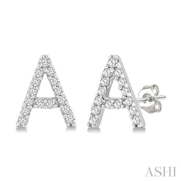 1/10 Ctw Initial 'A' Round Cut Diamond Earrings in 10K White Gold Image 2 Adler's Diamonds Saint Louis, MO