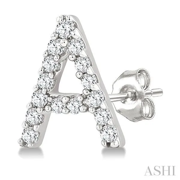 1/10 Ctw Initial 'A' Round Cut Diamond Earrings in 10K White Gold Image 3 Adler's Diamonds Saint Louis, MO