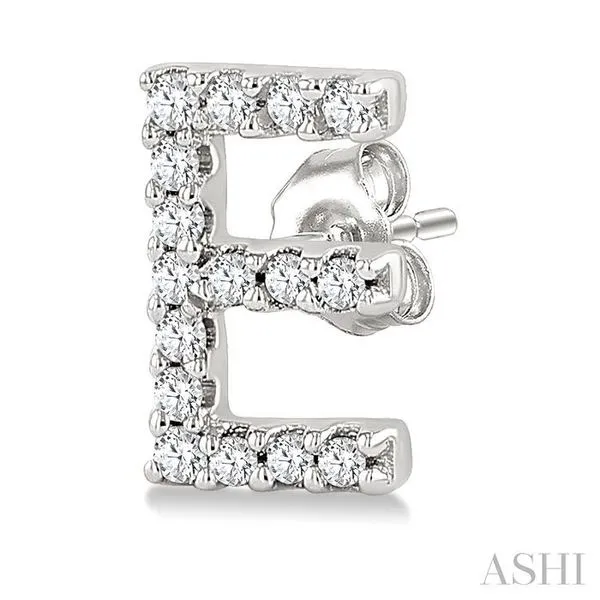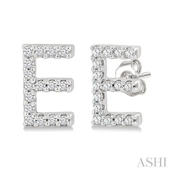 1/10 Ctw Initial 'E' Round Cut Diamond Earrings in 10K White Gold Image 2 Adler's Diamonds Saint Louis, MO