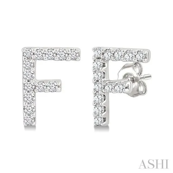 1/10 Ctw Initial 'F' Round Cut Diamond Earrings in 10K White Gold Image 2 Adler's Diamonds Saint Louis, MO