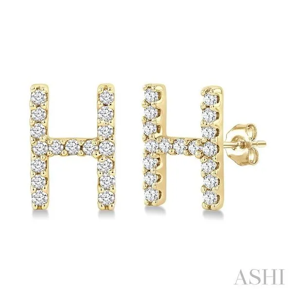 1/10 Ctw Initial 'H' Round Cut Diamond Earrings in 10K Yellow Gold Adler's Diamonds Saint Louis, MO