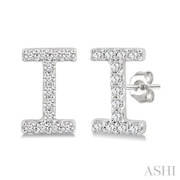 1/10 Ctw Initial 'I' Round Cut Diamond Earrings in 10K White Gold Image 2 Adler's Diamonds Saint Louis, MO