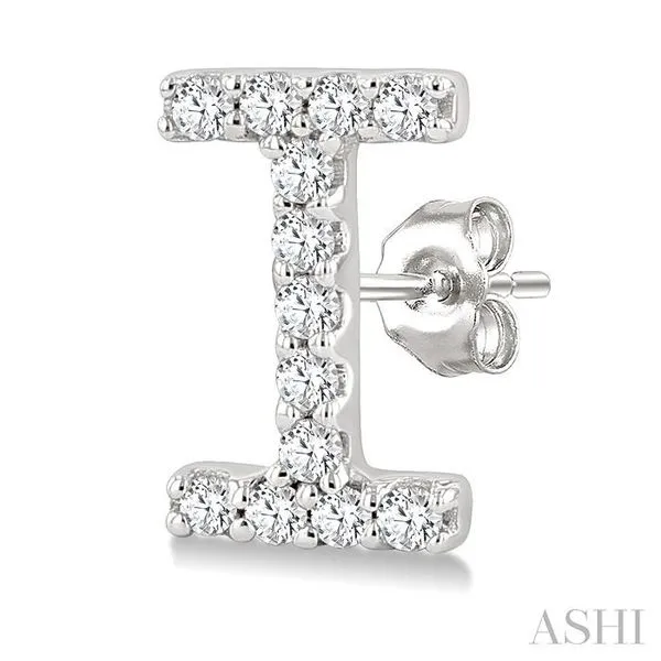 1/10 Ctw Initial 'I' Round Cut Diamond Earrings in 10K White Gold Image 3 Adler's Diamonds Saint Louis, MO