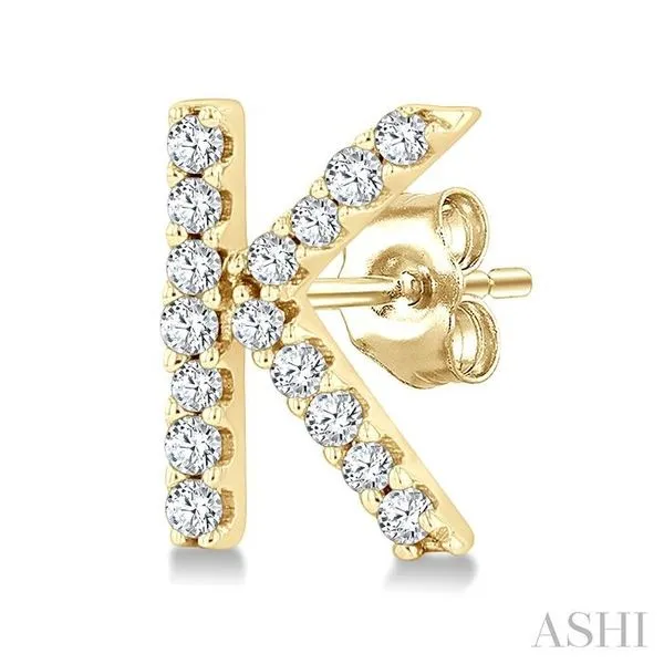 1/10 Ctw Initial 'K' Round Cut Diamond Earrings in 10K Yellow Gold Image 2 Adler's Diamonds Saint Louis, MO