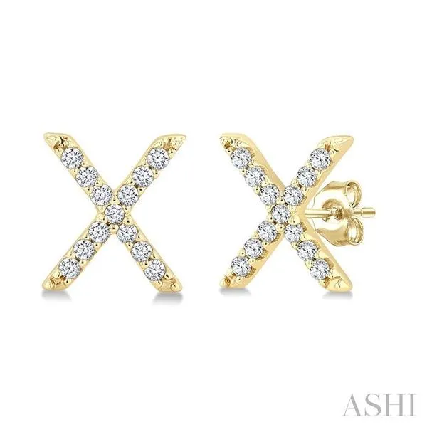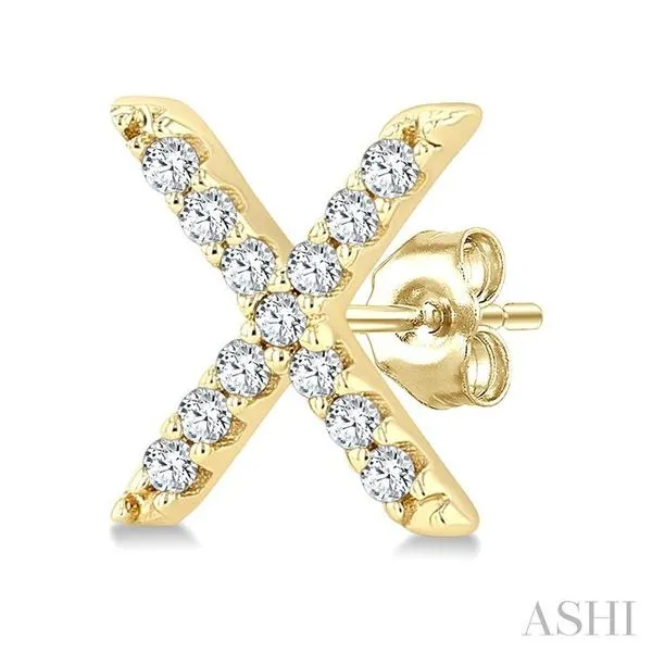 1/10 Ctw Initial 'X' Round Cut Diamond Earrings in 10K Yellow Gold Image 2 Adler's Diamonds Saint Louis, MO