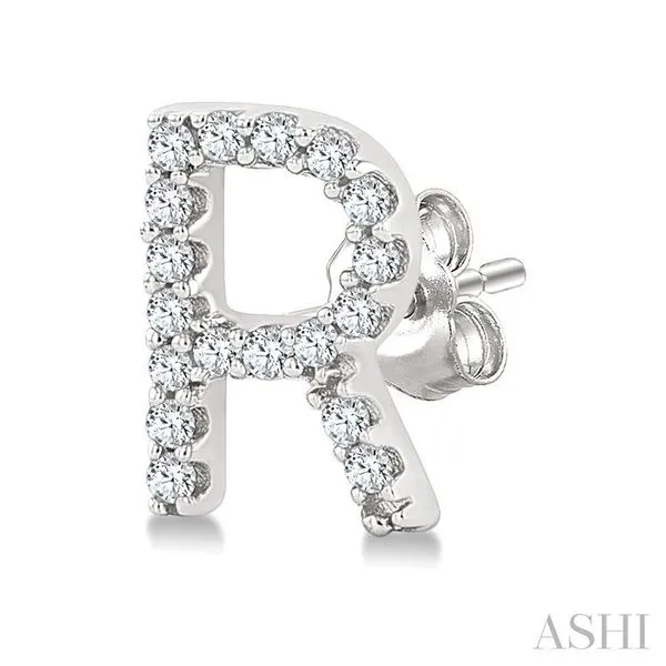1/10 Ctw Initial'R' Round Cut Diamond Earrings in 10K White Gold Image 2 Adler's Diamonds Saint Louis, MO